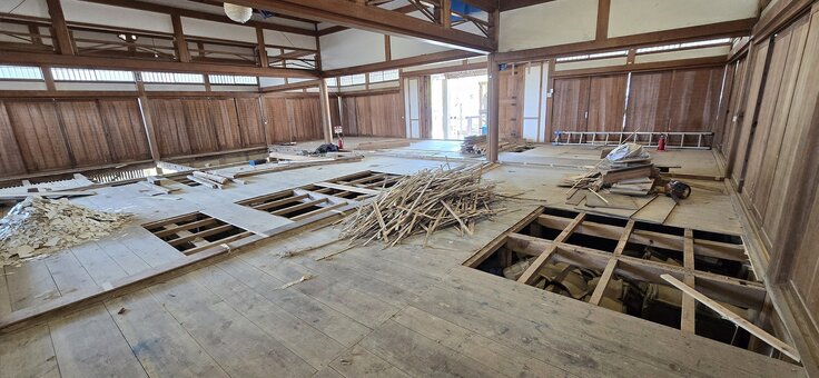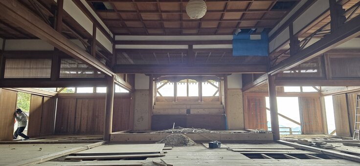引き続き、第 2 期工事に入ります。基礎を補強 し、耐震強度を高め、床、壁、天井、縁側、排水 路の整備など、順次進めて参ります。先代の幸謙 和尚により植えられた一畑山の大きくなった杉の 木を、たくさん伐採し、乾燥し、製材して、修復の ために用立てております。 地元大工の棟梁と、現場の状況を見ながら綿密に打合せをして、柔軟に計画を微修正しながら進めています。