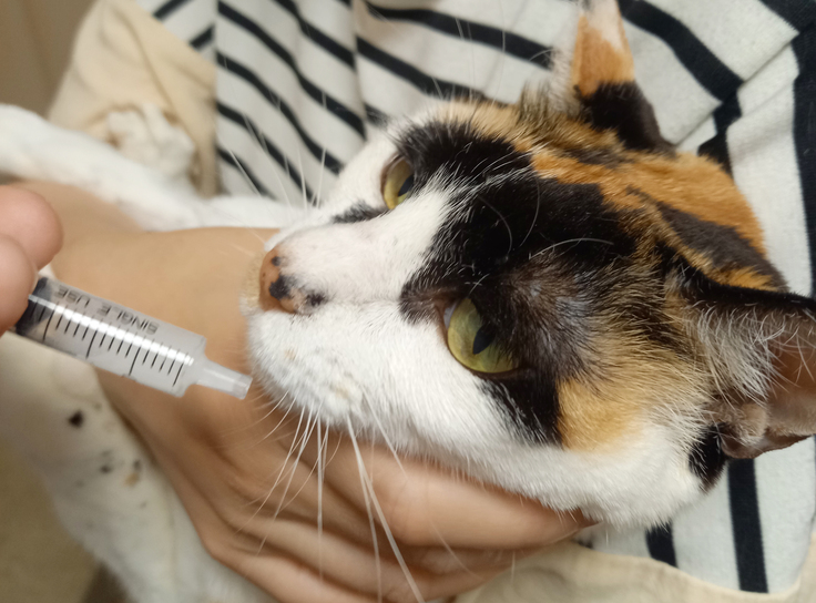 投薬中の写真は撮影が難しいので、本人(猫)出演による投薬のイメージ写真を貼ります。