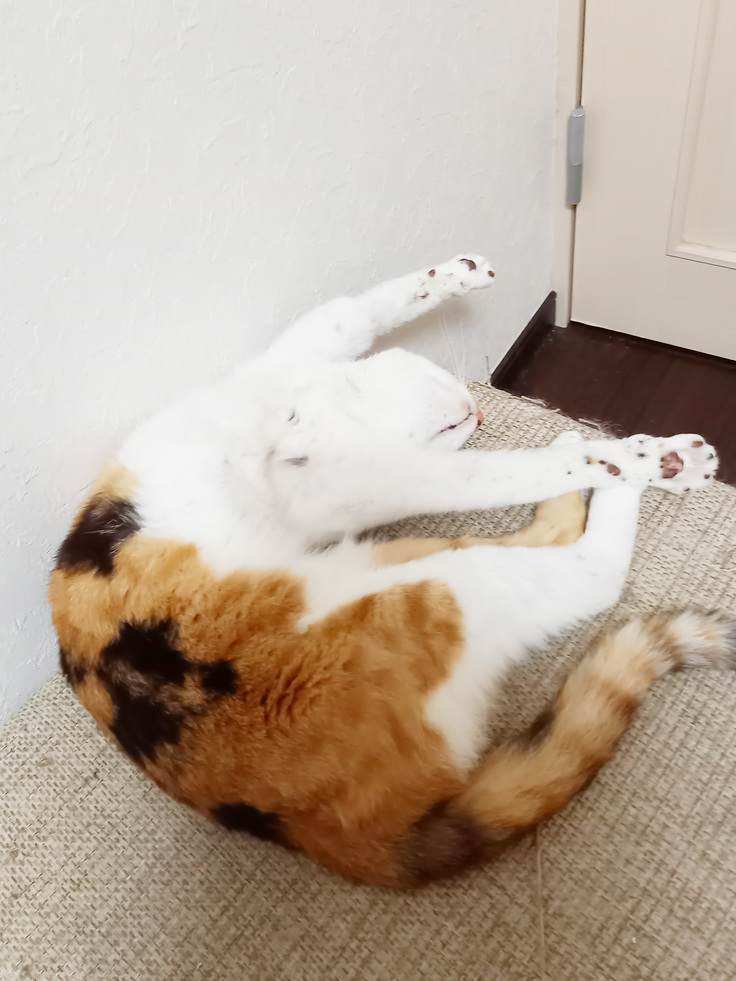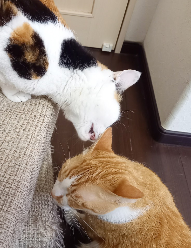 最後に今日の市です。ヘソ天で腕をぐーんとしてる所と、年下猫にグルーミングしてあげてる所です。