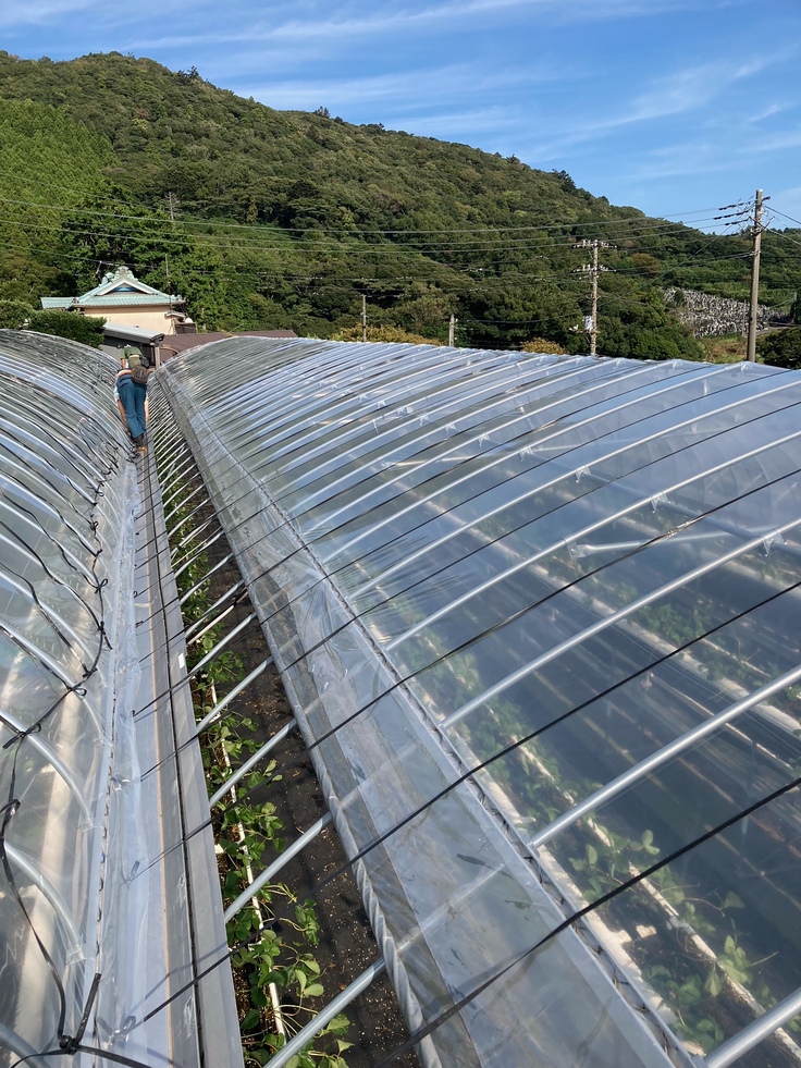 無菌の苗を植え付けたハウスに今ビニールを掛ける作業をしています!朝8時ぐらいになると風が吹いてくるのでここ最近は6時から仕事です😊異常気象と言われる近年、夜が寒く日中がとても暑いです。これのせいで太陽が昇って来ると上昇気流が発生し風が発生し作業を手間取らせます😭苗の病気だけではなくビニールを掛ける作業まで難しくするのは本当に悲しいですね💦