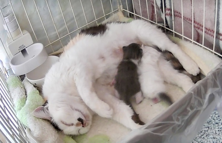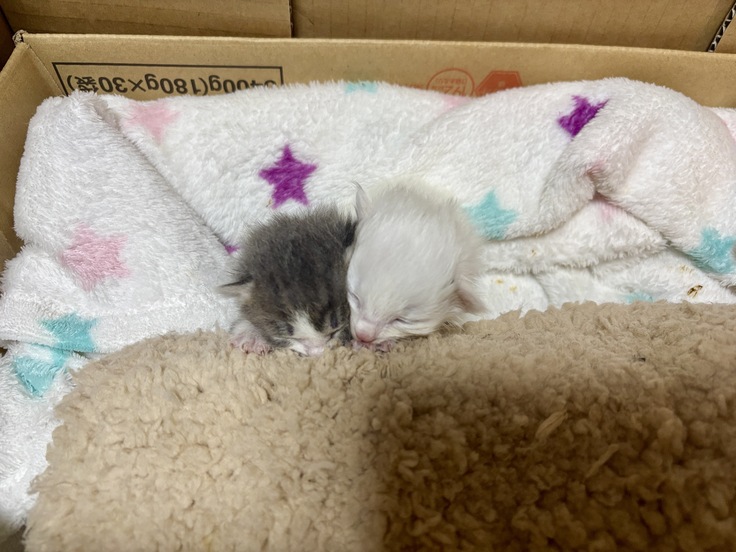 おっぱいは、止まってしまいほとんど出ませんがママが恋しい2匹の子猫を喜んで受け入れてくれました。ミルクは哺乳瓶になりますが、はなちょに助けてもらいながら、育てていきます。