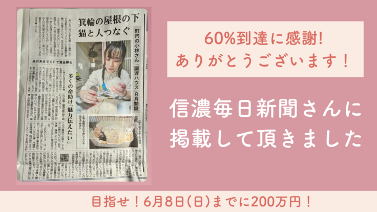【60%到達に感謝!】「信濃毎日新聞」さんに本プロジェクトを掲載いただきました!