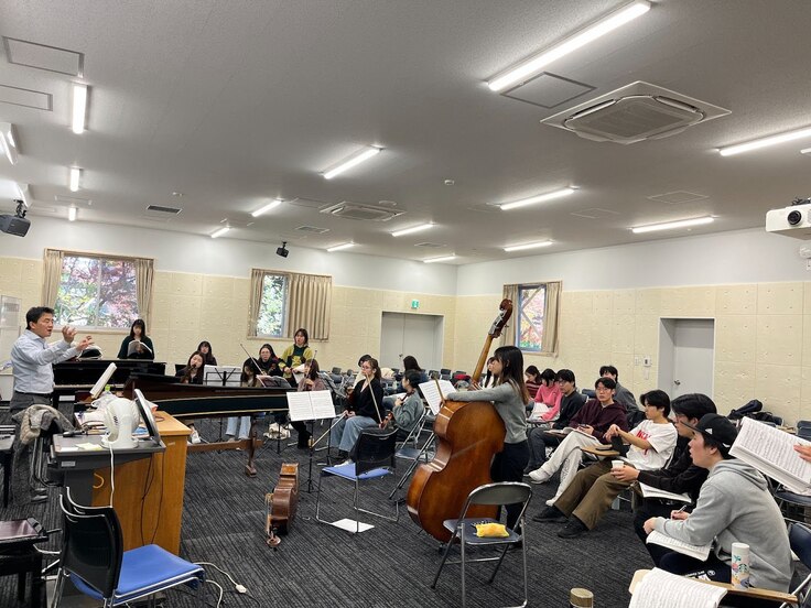 弦楽器はICU公認オーケストラのCMS管弦楽団から有志メンバーが集まって、隔週で集まって練習をしています。