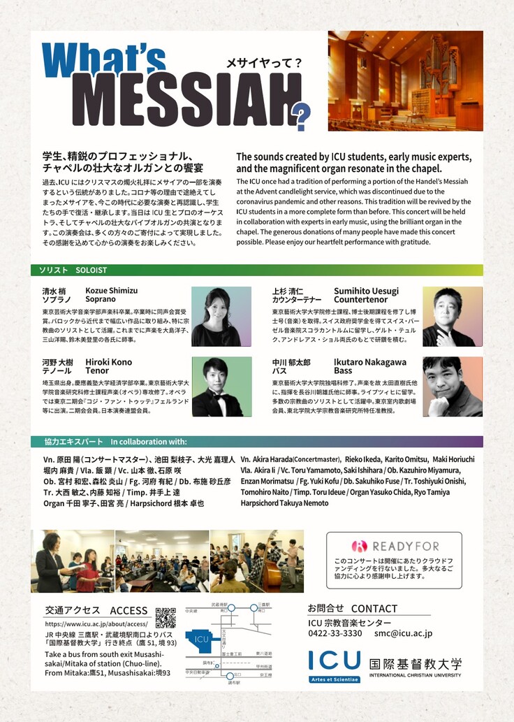 ICUの伝統「メサイア演奏会」を復活させようと取り組む学生達の活動を知っていただき、応援の声を学生の力にしてほしいと当プロジェクトの実施を決めました。