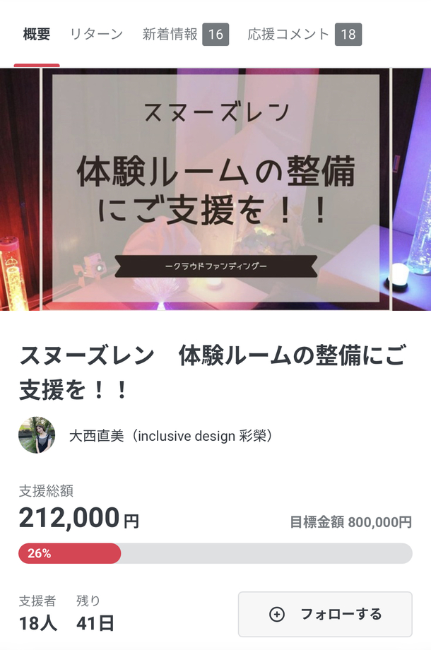 これまで、18名 の方から 合計 212,000円 のご支援をいただいております!