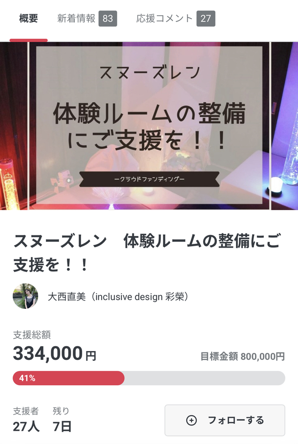 これまで、27名 の方(企業さま含む)から 合計 334,000円 のご支援をいただいております。