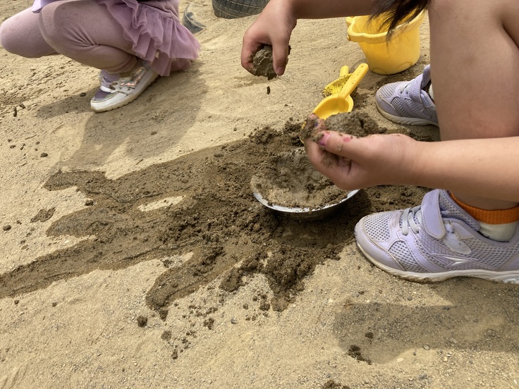 また、泥団子が出来なくて怒る子、落として壊れて悲しがる子、思うように出来なくて悔しがる子などがいます。それぞれの子にとっては、様々な感情を乗り越えるチャンスになりますし、まわりにいる子はそういう感情の子とどのように接していくか学んでいきます。