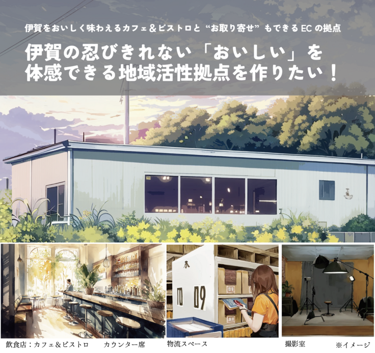 伊賀を感じる「カフェ&ビストロ(飲食店)」と最新冷凍技術を使ったお取り寄せができる「EC拠点」を完成させる。