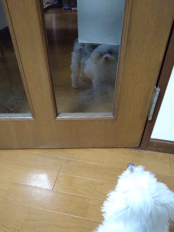 写真は、ガラスの反射で私を見るイグです😆