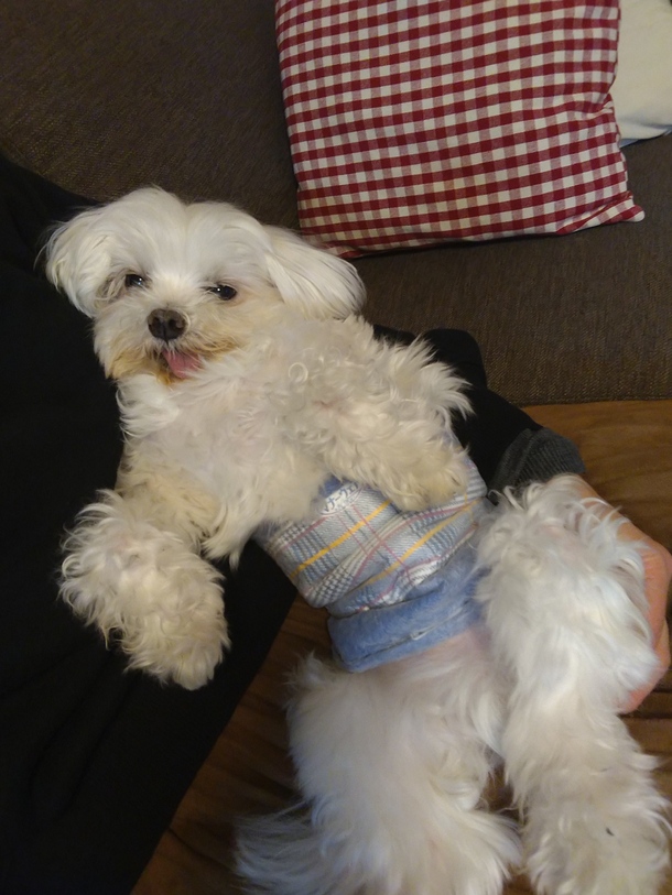 イグは抱っこが大好きですが、抱っこしたてはカチコチに全身硬直します。