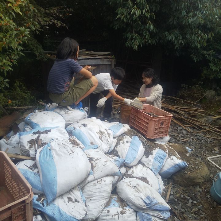 イホリディという作業の日を設け、保護者さんやこどもたち、ボランティアさんと始めました。まだまだがれきの運搬整理がメインではありますが。