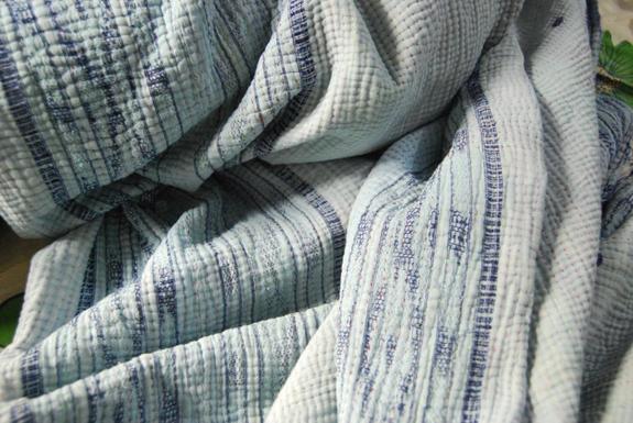 古い布を使っているので柔らかくて気持ちいいですが、大判なこともあえい、穴などのあいた布を使っていることもあって、時間がかかる割には値段をつけにくく、商品としてはちょっと販売しづらいのが難点です。