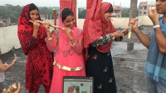 ↓写真撮影のあとはみんなでサトウキビをかじる、の図。