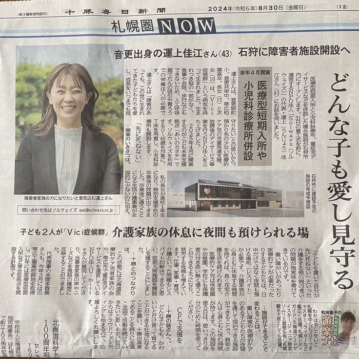 十勝毎日新聞に掲載(2024.8.30) <代表理事 運上佳江>