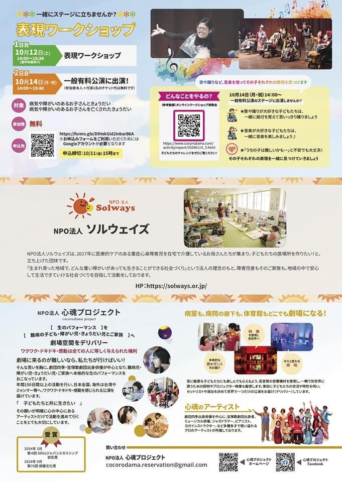 「心魂プロジェクト」では、劇団四季や宝塚歌劇団出身の俳優が中心となり本物のパフォーマンスを重度障がい児、難病児、医療的ケア児に届ける事業をされています。