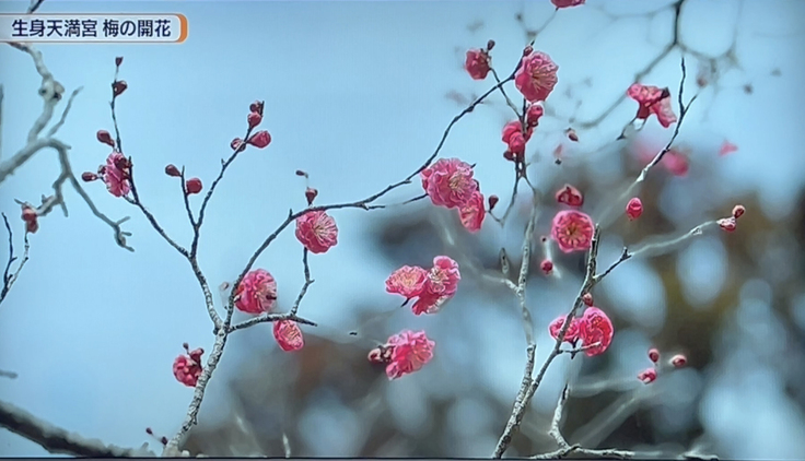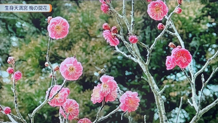 地元テレビ放送局 KCNなんたん様が、梅園の紅梅を取材下さいました。