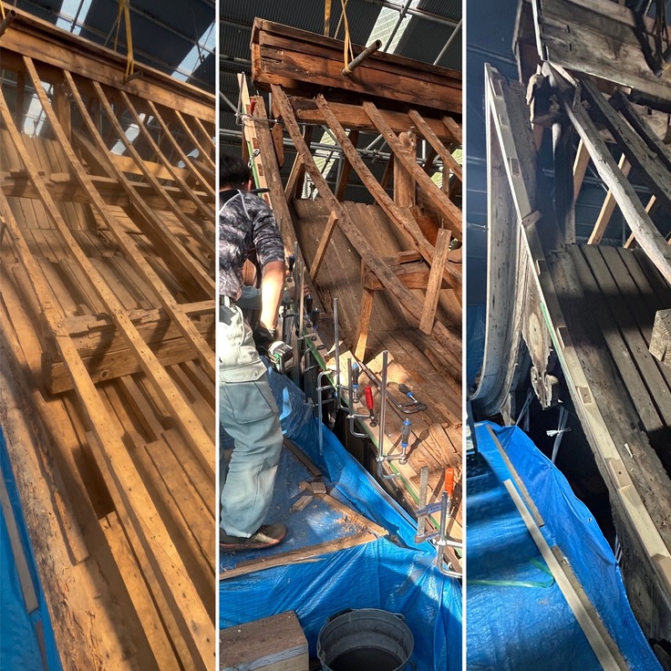 木部の修復に、取り掛かって頂いています。