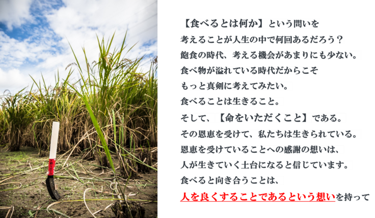 当プロジェクトは、食べることは【生きること】であり、そして【命をいただいていること】を