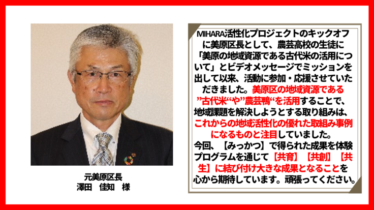 大阪府堺市美原区の地域資源である美原の古代米&農芸鴨を活用して、
