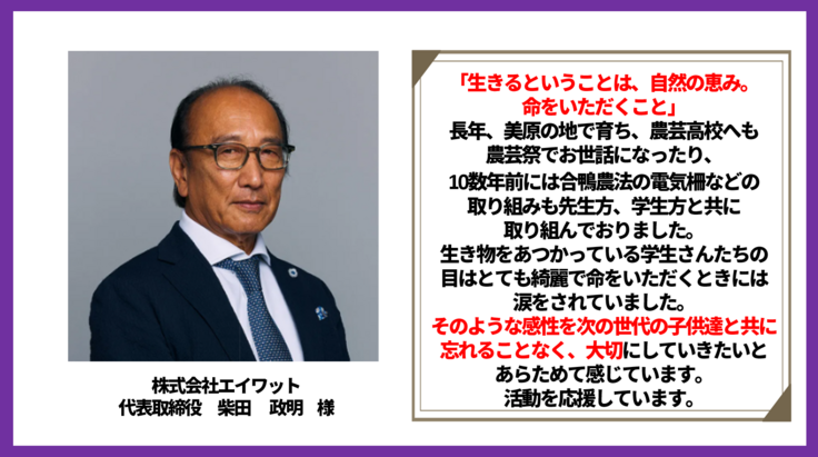 ※大阪府立農芸高等学校の資源動物科/総合環境専攻様からプロジェクトを行うこと、