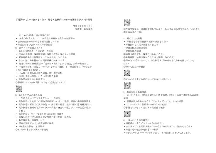 9月19日、第一学院高等学校 湘南藤沢キャンパスにて、全学年を対象に「『関係ない』では済まされない!進学・就職前に知るべき法律トラブル防衛術」と題した講演会を実施しました。