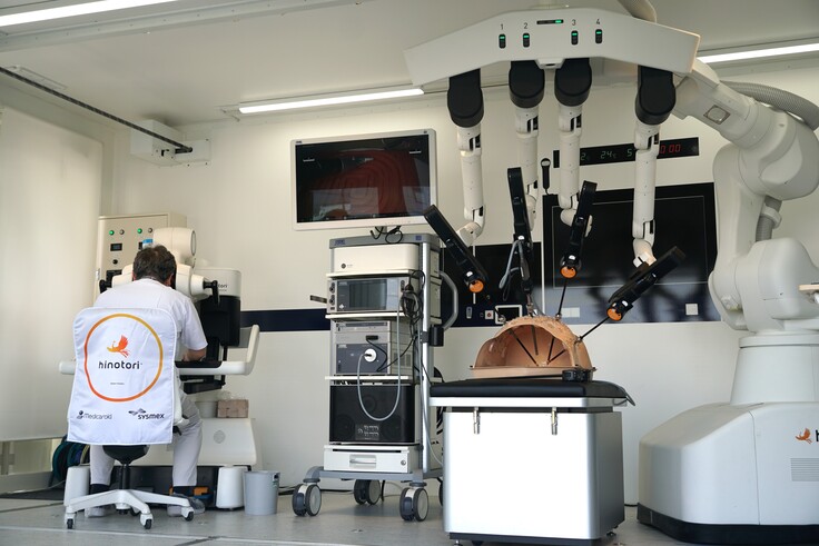医師やコメディカルスタッフを対象に展示見学会を行い、hinotoriを操作体験しました。