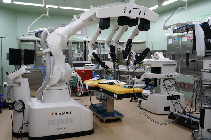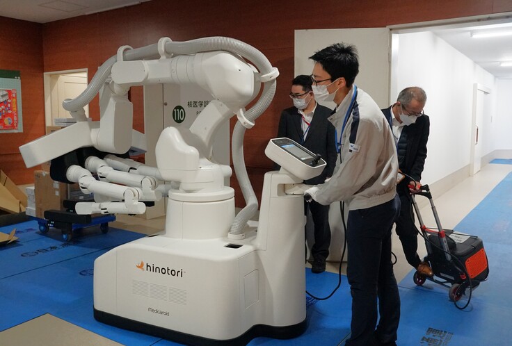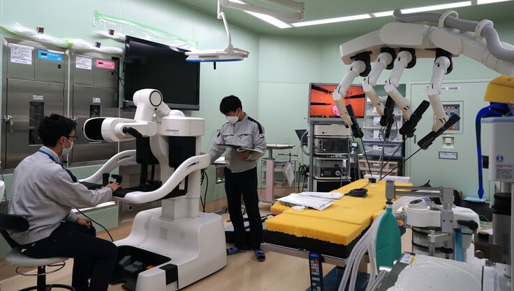 ↑手術室にてオペレーションアームやコックピットの調整をしていただきました