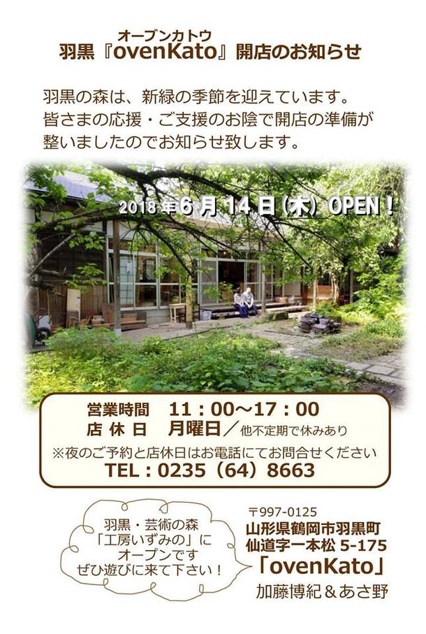 6月14日(木)「工房いずみの」内にレストラン 羽黒『ovenKATO』 がグランドオープンいたします。「孫たちの夢」いよいよ本格的に始動です!