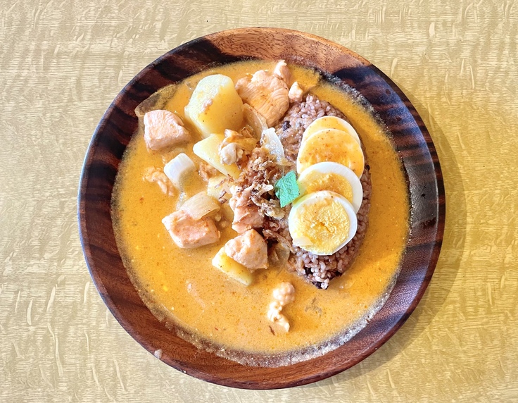 ランチメニューの『マッサマンカレー』や、『発芽発酵酵素玄米を使用おむすび』も引き続き提供しおります🍽