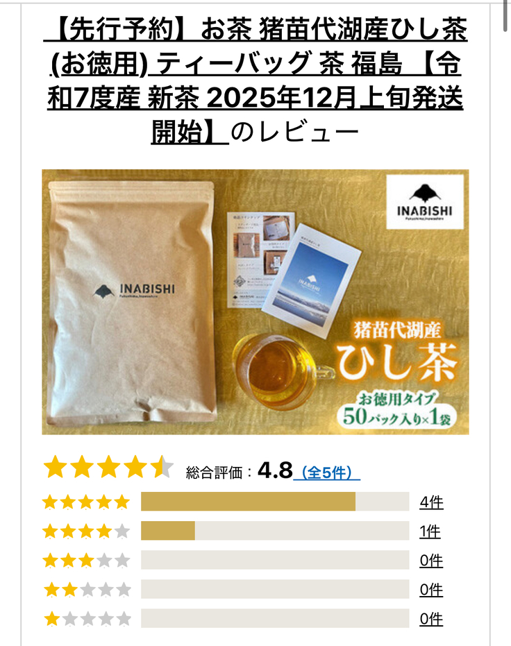 先日、**猪苗代湖産ひし茶の50パック入り(業務用)**が、猪苗代町のふるさと納税サイトにて【先行予約】の受付が始まりました!