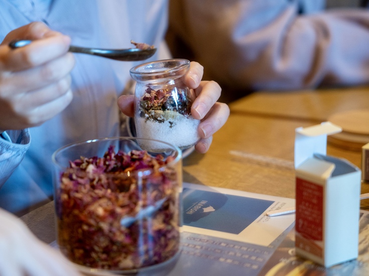 作ったバスソルトはお土産としてお持ち帰りいただけるので、自宅でのバスタイムに使えば、まるでスパのような贅沢時間に🕊️