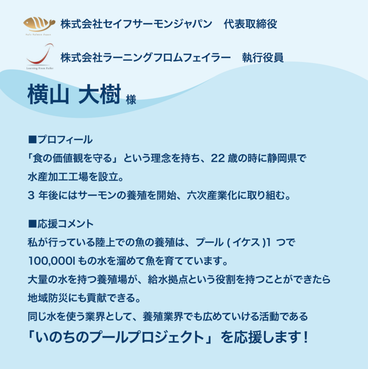 - 株式会社フィスタ 野口翔(いのちのプールプロジェクト実行委員会)