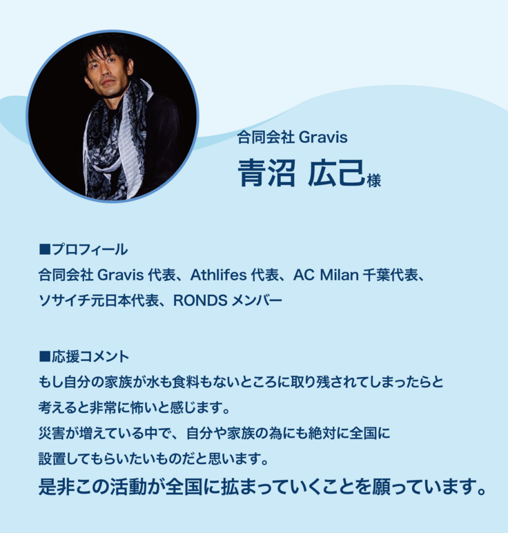 今回のプロジェクトを通して、実際に被害のあった静岡市のプールがある施設にSESERAをお届けすることで、災害時の飲み水不足への不安をなくす対策を行いたいと考えます。