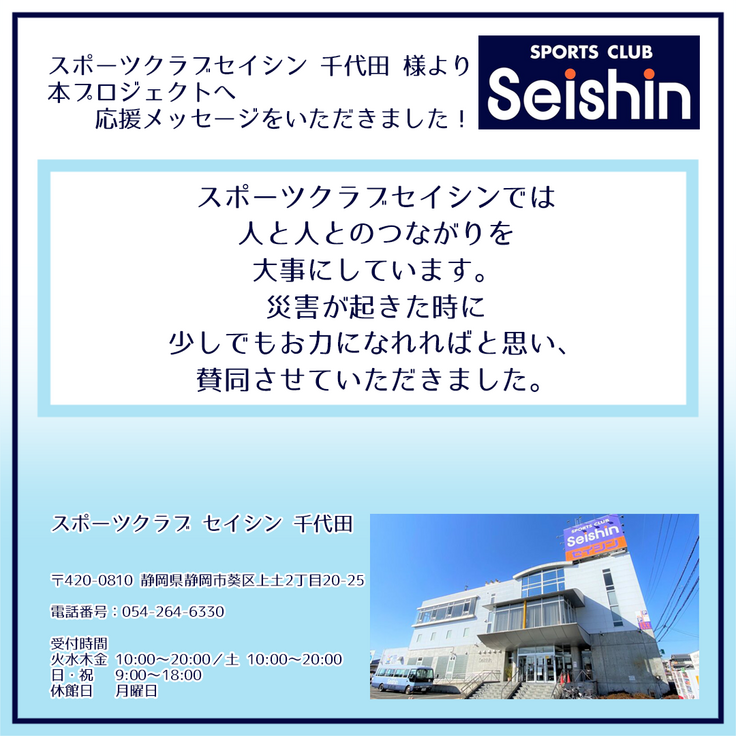 本プロジェクトご賛同施設「スポーツクラブセイシン 千代田」様のご紹介