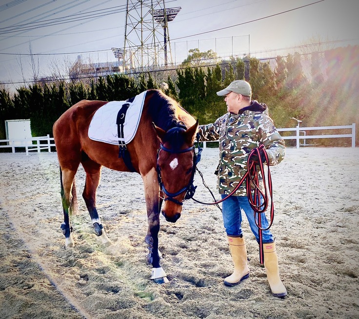 現在は福岡市の「乗馬クラブルヴァード花畑」にて当該馬のトレーニングを行っております。