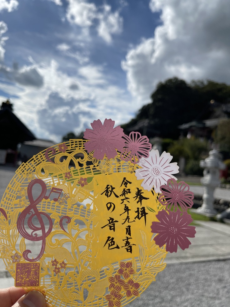 音符とコスモスが繊細に表現されたデザインになっていて、各バンドの全国大会や演奏会など、重要な本番が秋に控えている吹奏楽部にはピッタリな御朱印なのです🎶