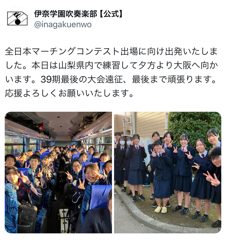 遠征に出発した日に吹奏楽部【公式】Xでも
