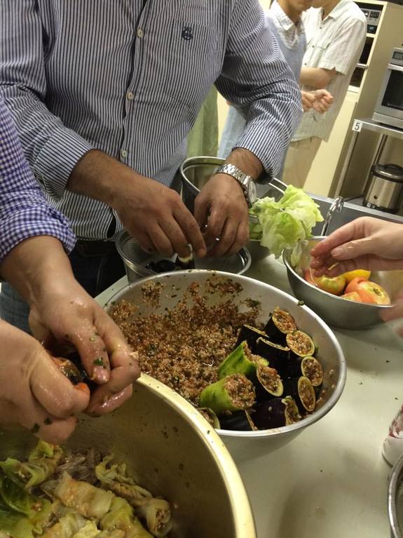 9月13日の夜、アリーさんの奥様、Zhwanさんが、イラクの郷土料理を振る舞ってくださいました。今日ばかりは、紛争や政治の話は抜きにして、楽しそうに料理をしています。今日の料理は、ドルマといい、イラクでは伝統の家庭料理らしいです。