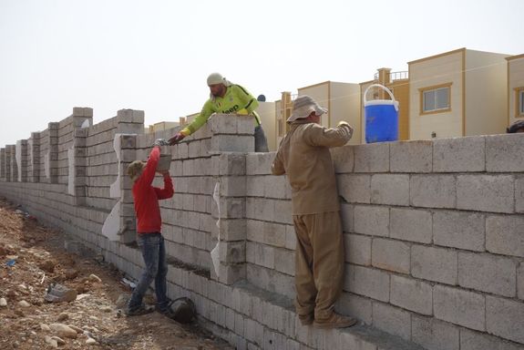 塀の工事をしているのは、シリアのコバニ出身の難民の方々です。