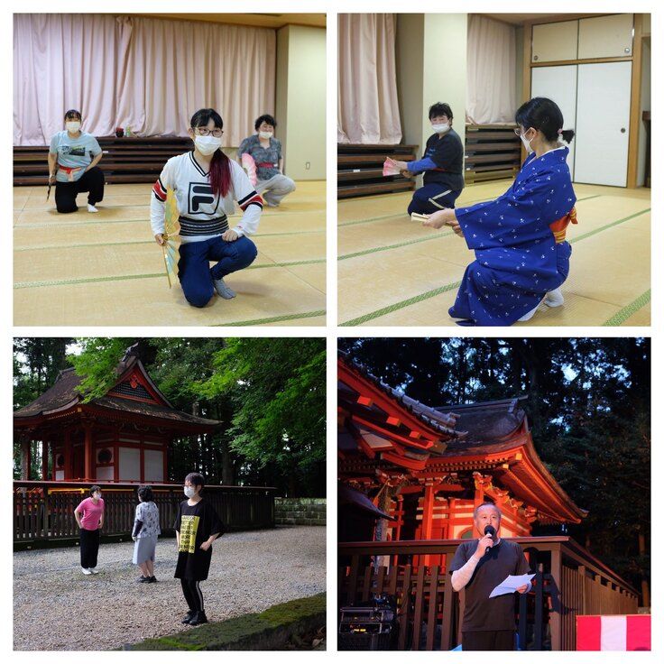地域おこし協力隊が作・演出を担当し、出演は地元劇団が、舞台設営は地元文化会館スタッフと劇団員が担当し、市役所と地域住民、氏子の皆様のバックアップの元、2022年に初演を迎えた狂言仕立てのオリジナル芝居となっています。