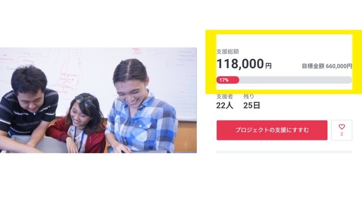 「開始5日間で目標金額の20%」、皆様のご支援・ご協力のおかげであと少しで達成というところまで来ています!!ありがとうございます!