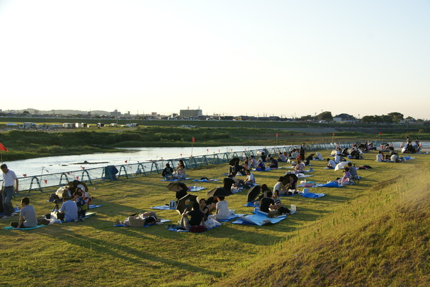 芝生の上にブルーシートを敷いて、皆さんでゆっくり花火をご観覧いただけます。