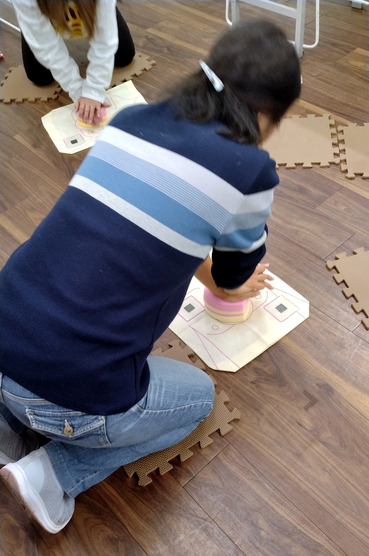 また、胸骨・胸部圧迫(所謂心臓マッサージ)心肺蘇生を行う際には、手の🖐️どの部分を、胸のどの位置に当て、どのくらいの強さで押すのか。1分間に行う回数やリズム(童謡のこの歌に合わせましょう)など、しっかりと学ぶことができました。