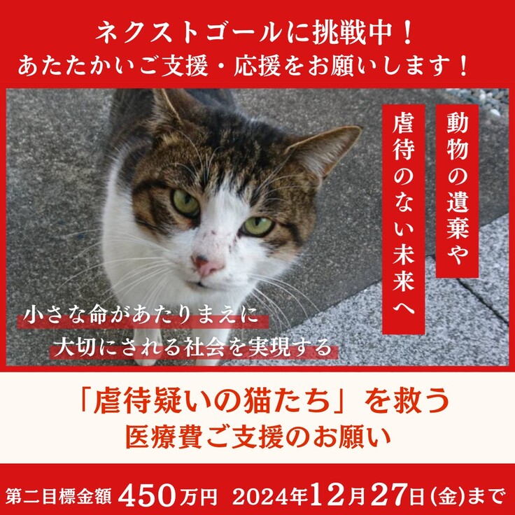 クラウドファンディング終了までにご支援いただける皆様方のお気持ちにお応えするべく、必ず猫たちのために大切に使わせていただきます。年末の慌ただしい時期に入りますが、残り16日、どうか最後まで見守ってください🙇