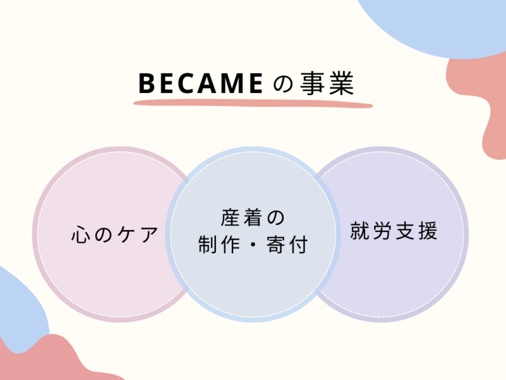 BECAMEでは以下の活動を通じて、我が子とお別れを経験したお母さん、お父さんのサポートを行います。