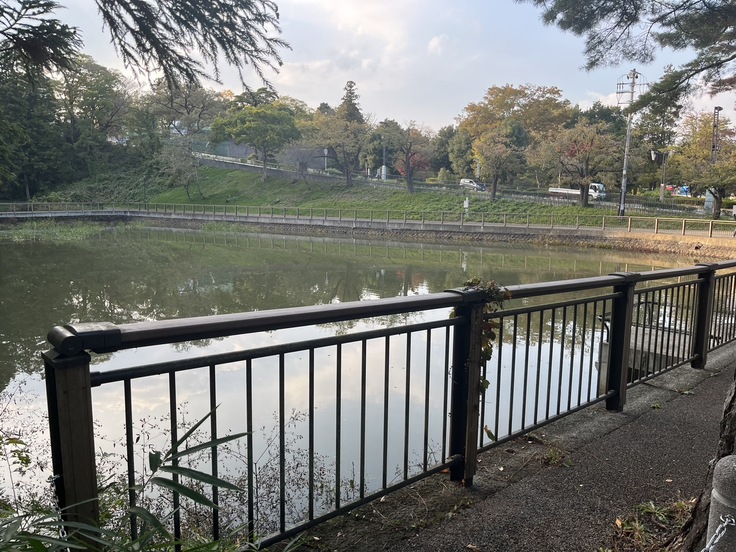 こちらは、仙台市博物館の北側にある「五色沼」です。もともとは仙台城の三の丸のお堀でしたが、現在は小さな池のようになっています。