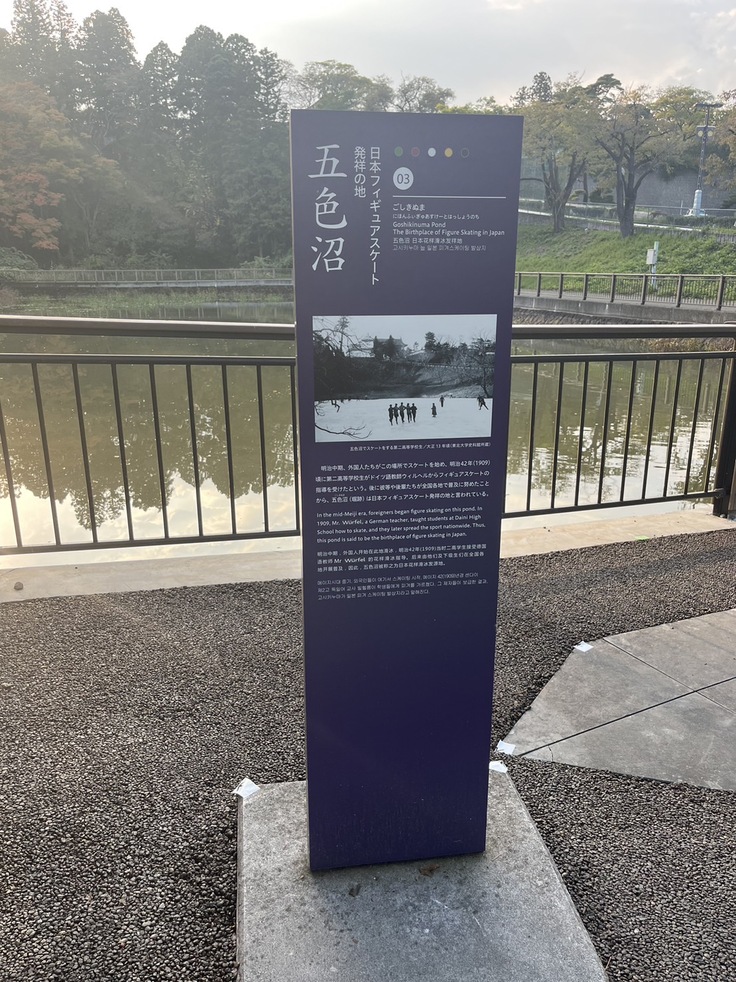五色沼は言わずと知れた「日本フィギュアスケート発祥の地」とされ、ほとりには記念碑が設置されています。