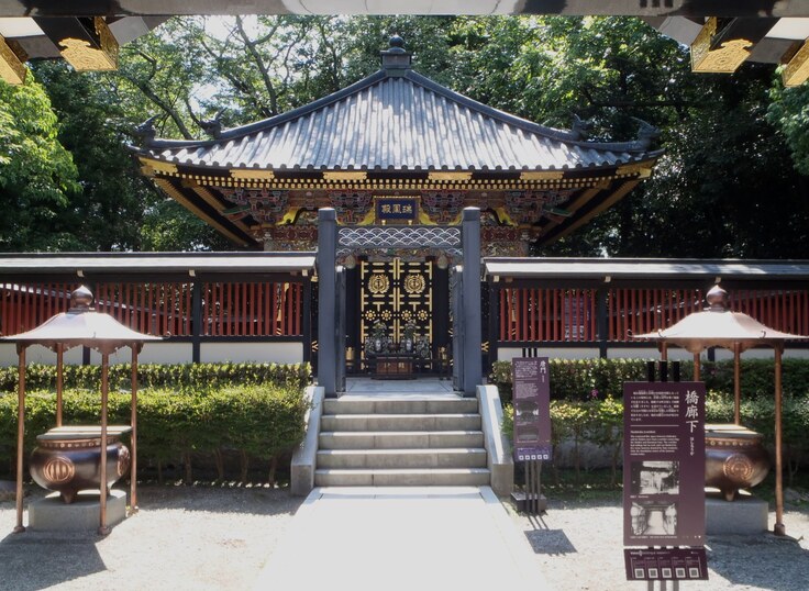 桃山の遺風を伝える豪華絢爛な廟建築で、1931年に国宝に指定されましたが、戦火によって焼失しました。現在の建物は1979年に再建されたものです。敷地内には、二代・三代藩主の霊屋のほか、発掘調査の資料を展示する資料館があります。