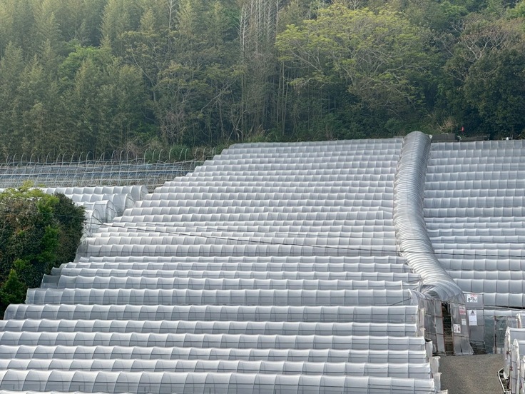 農家さん減少問題で何よりもの要因は、石垣いちご栽培は山の斜面を利用しているので、近年毎年の豪雨で土砂崩れ災害が起きてしまい畑が流されて使用再生不可能になっている事です。