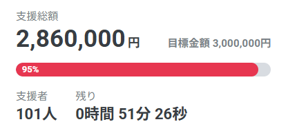 ここまできたらなんとか達成させたいです!そのためには皆様のお力が必要です。